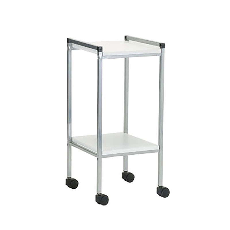 Gueridon avec plateaux en bois stratifié, idéal pour transporter et ranger le petit matériel de soin.