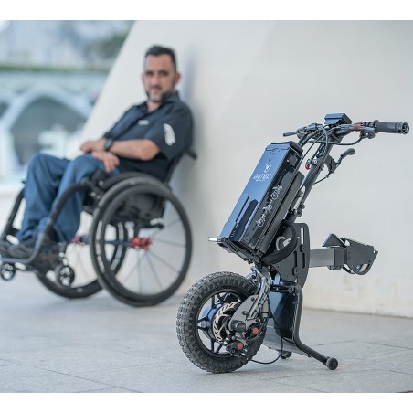 Batec Mini 2 est la solution la plus compacte, pratique et polyvalente de la gamme de cinquième roue BATEC. Adaptable sur châssis fixe ou pliant de 30 à 50 cm (consulter le tableau de compatibilité). Poids max. de l'utilisateur : 110kg. Installation facile et brevetée avec le système Batec Easy-Fix. Eclairage avant et arrière pour voir et être vu. Vitesse : 10km/h ou 20 km/h (avec option voyageur) Autonomie : 28 km (batterie 280 Wh) ou 52 km (batterie 576 Wh) Déclinable pour utilisateurs paraplégiques, tétraplégiques et hémiplégiques.