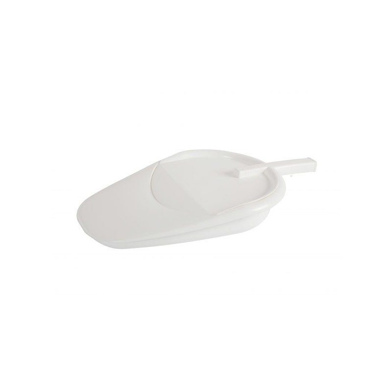 Bassin de lit avec poignée droite. Avec ou sans couvercle. Dimensions : 51 x 28 x 9 cm.
