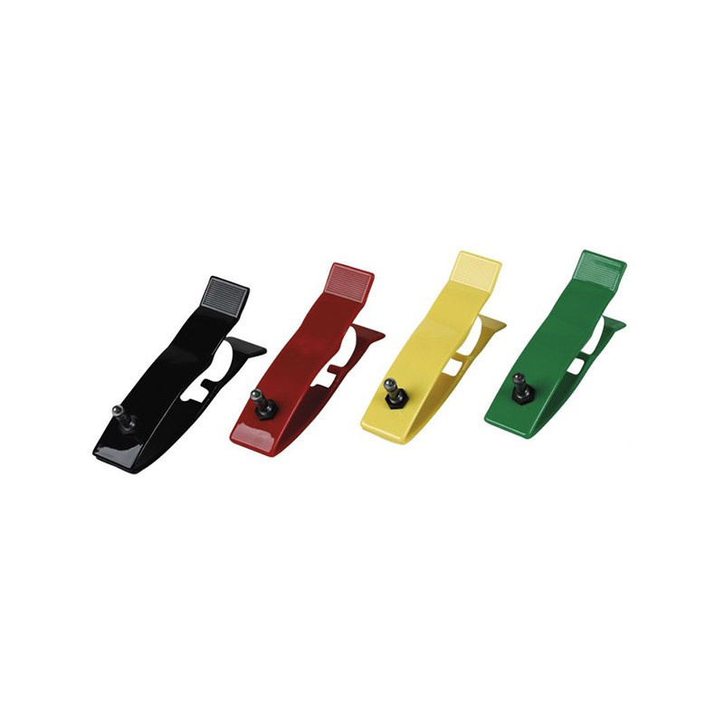 Découvrez les pinces membres en plastique pour adultes, disponibles en un ensemble de 4 pièces : une noire, une rouge, une jaune et une verte.