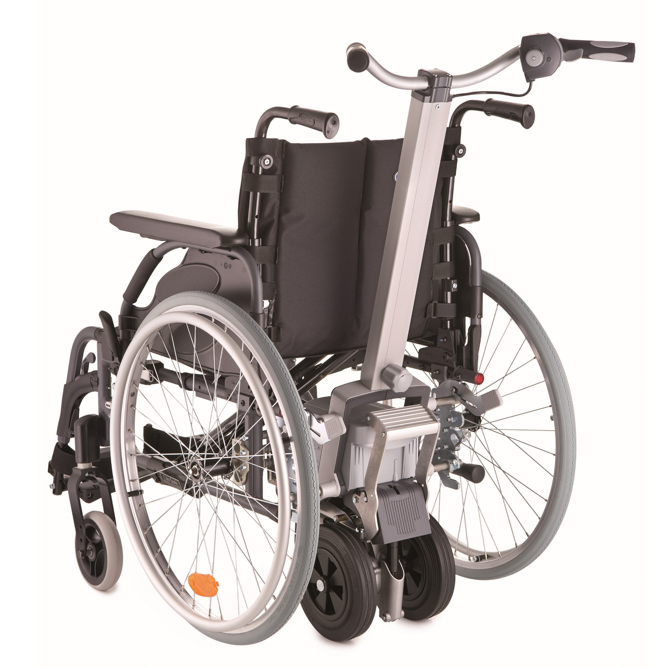 L’accompagnant doit actionner la gâchette pour faire avancer ou reculer le fauteuil roulant. Le viamobil eco V14 est une motorisation de fauteuils roulants manuels facile à utiliser et confortable grâce à une suspension intelligente assurant une pression d’appui constante.