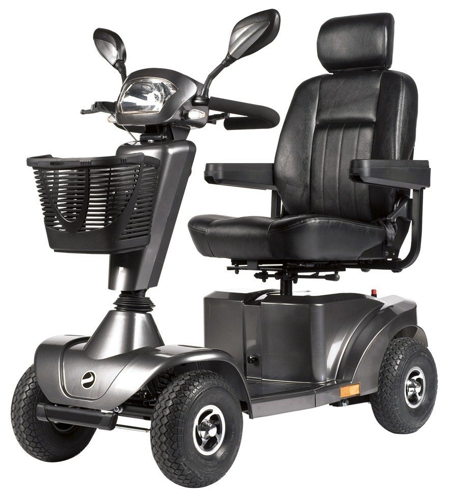 Dominante extérieure. Colonne de direction ajustable en angle. Système de suspension individuelle sur chacune des roues. Frein à disque. Eclairage LED. Appui-tête de série. Siège pivotant réglable en hauteur dim. 49 x 49 cm. Vitesse : 10 ou 12 km/h. Autonomie max. : 42 km. Batteries : 55 Ah. Dim. L 135 x l 66 cm. Poids max. : 150 kg. Coloris Urban Grey Metallic. Nombreux accessoires disponibles. Garantie : 2 ans.
