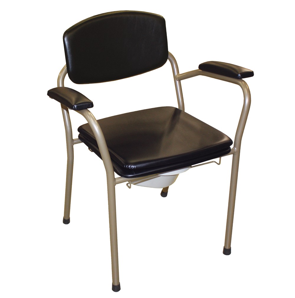Chaise garde-robe à hauteur fixe et accoudoirs confort fixes. Seau ergonomique + couvercle. Poids max. : 130 kg. Existe en version XXL (Candy 600 Fortissimo).
